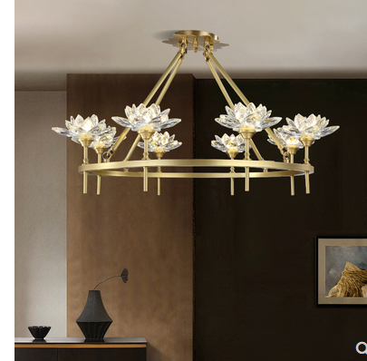 全铜大厅吊灯创意名宿客厅餐厅轻奢现代新中式莲花水晶禅意灯具