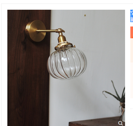 空野枝蓝 复古北欧日式床头玄关黄铜壁灯名宿过道简约玻璃镜前灯