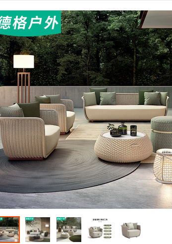 户外沙发北欧设计师绳编家具庭院花园院子别墅酒店阳光房创意组合