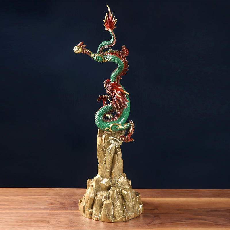 特级黄黄铜飞龙在天工艺品中国龙生肖摆件家居客厅装饰品高端礼品