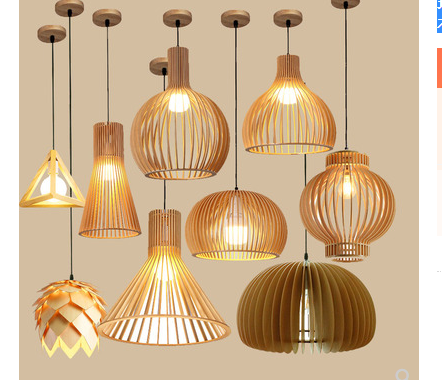 现代中式餐厅客厅实木吊灯创意木艺南瓜灯名宿餐饮木质鸟笼艺术灯