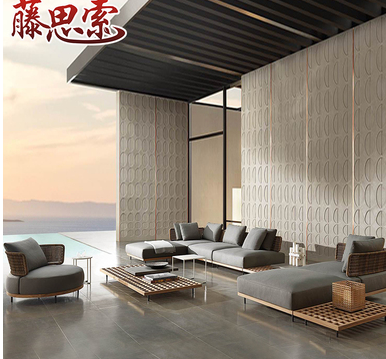 户外沙发庭院休闲藤编家具柚木别墅酒店室外阳台客厅花园藤椅沙发